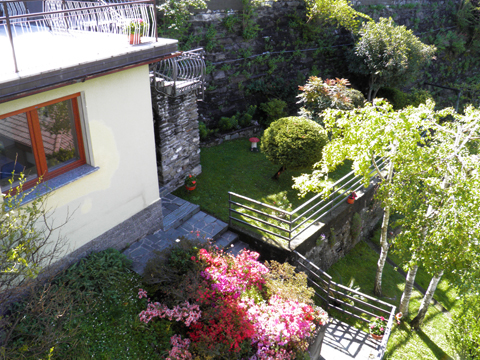 Die schöne Ferienwohnung Casa Riva im Stil von einem Bungalow am See - liegt direkt am Comer See und hat fantastische Seesicht und direkten Seezugang.
