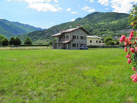 Seenah gelegene Ferienwohnung in neuem Rustico-Landhaus in Gravedona für bis zu 4 Personen, mit Terrasse und grossem Gemeinschafts-Garten . In Alleinlage nur ca. 150 m vom See und der Seepromenade entfernt.